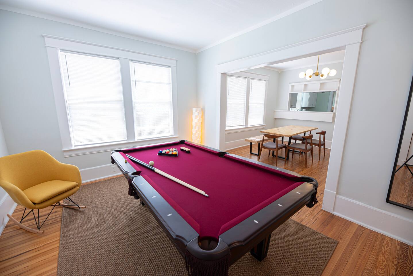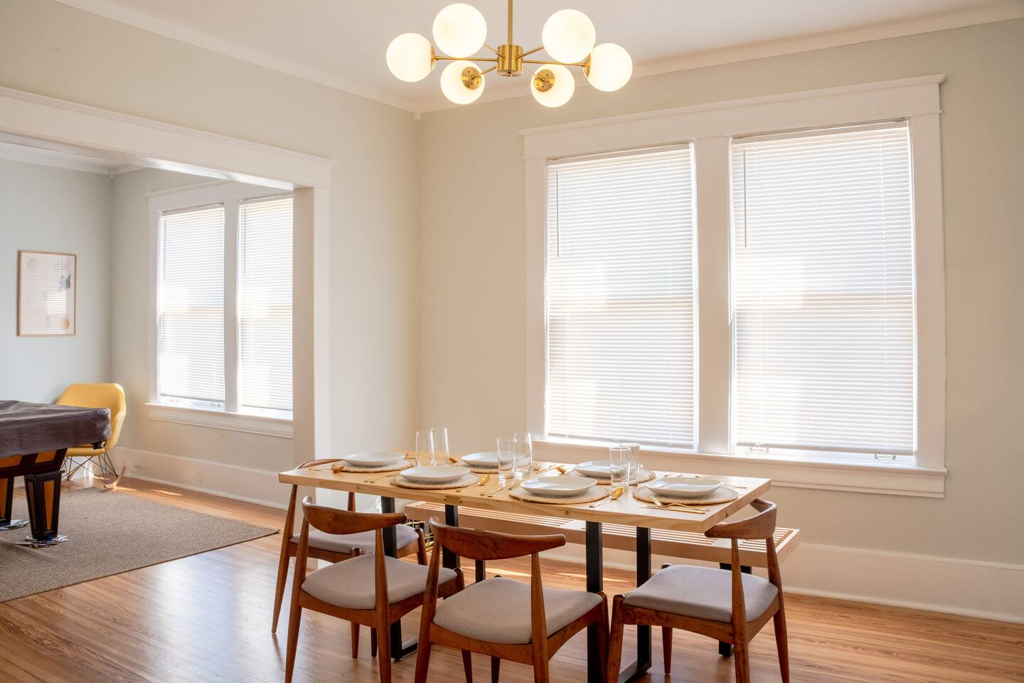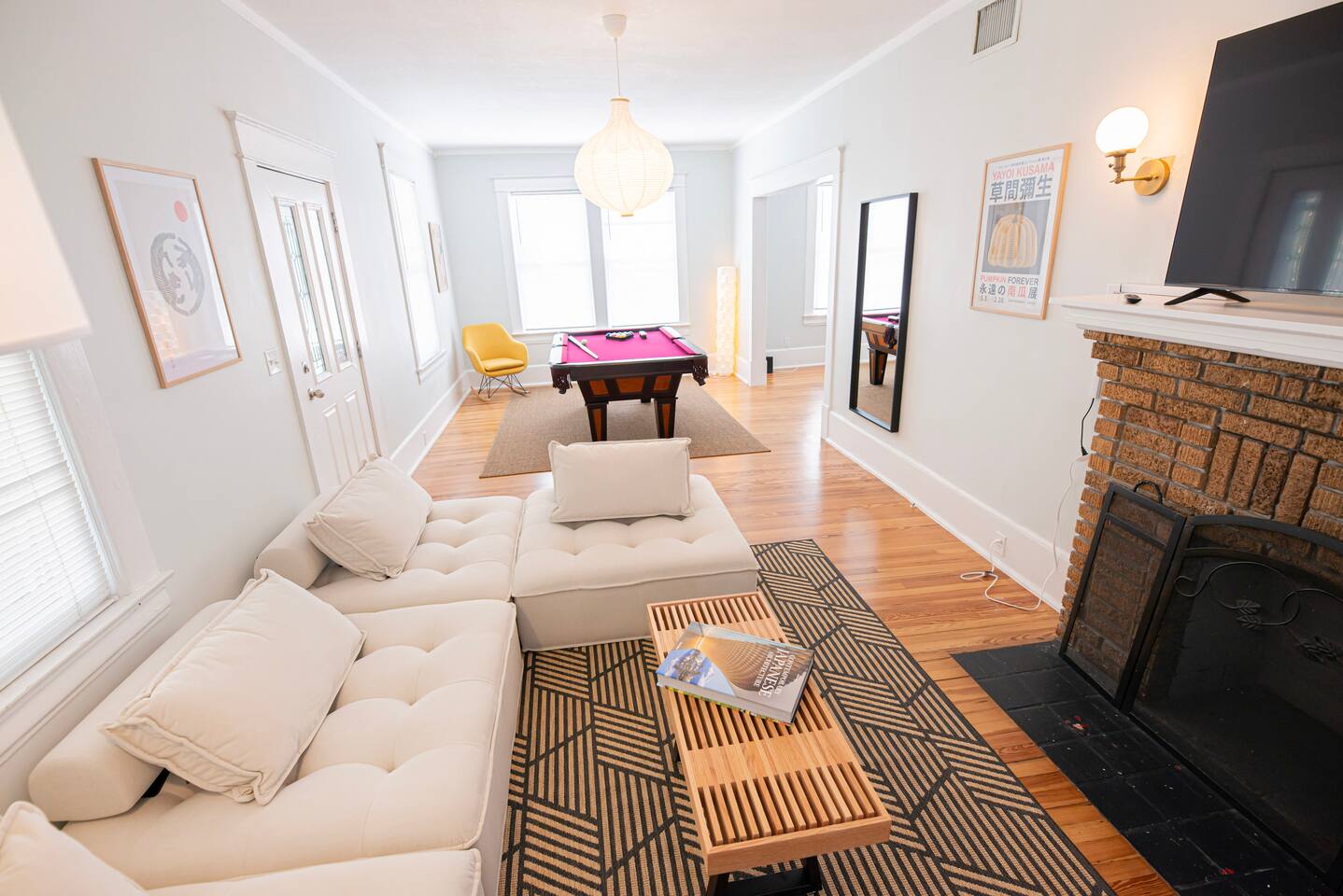 Tailored for any design enthusiasts our home is designed to be an aesthetic blend of vintage and contemporary decor. Step into the beautifully curated living space with Japanese influence, iconic Mid Century furniture, and complete with a Pool table. The dining area is open and vast, and includes a handcrafted wooden dining set that can sit 6-8 people comfortably. The open concept layout connects the living, dining, and kitchen areas providing the perfect social atmosphere for guests to enjoy a spacious and memorable experience. The 2 bedrooms each come with a king size bed and a 55 inch smart tv for ultimate comfort and relaxation. Additionally the master suite has its own private bathroom and a couch/ sleeper for an additional 2 guests if needed. Private parking for 2 vehicles is included directly behind the property and additional free parking on street is available. Absolutely the best location in Orlando! • Walk Score 96 (walkable to shops, dining, cafes, night life, grocery, Lake Eola Park) • Extremely Safe Neighborhood • Fully Equipped Kitchen • Onsite Washer + Dryer • Private Parking 2 cars → 2 Comfortable and Spacious Bedrooms w/ King Beds and Smart TVs → 2 full Bathrooms → Pool Table → Coffee Maker → Work Space → High-Speed Wi-Fi → Fresh Towels and Linens → Keyless Automated Access Entire space is included in this rental. Please, make yourself at home. Please remember that you're staying in a house, not a hotel so please treat the space with respect. If any problems arise, we will do our best to take action ASAP, but there is no one living on-site 24/7. I am here for you during your stay, or I can be invisible. It’s up to you. If needed, I'm only a phone call/message away. You will be able to self-check in upon arrival. ✔ Lake Eola Park (1 min away) ✔ Central Business District (2 min away) ✔ Dr Phillips Performing Arts Center (5 min away) ✔ Kia Center (5 min away) ✔ Orlando International Airport (20 min away) ✔ Universal Studios (20 min away) ✔ Disney World (30 min away)