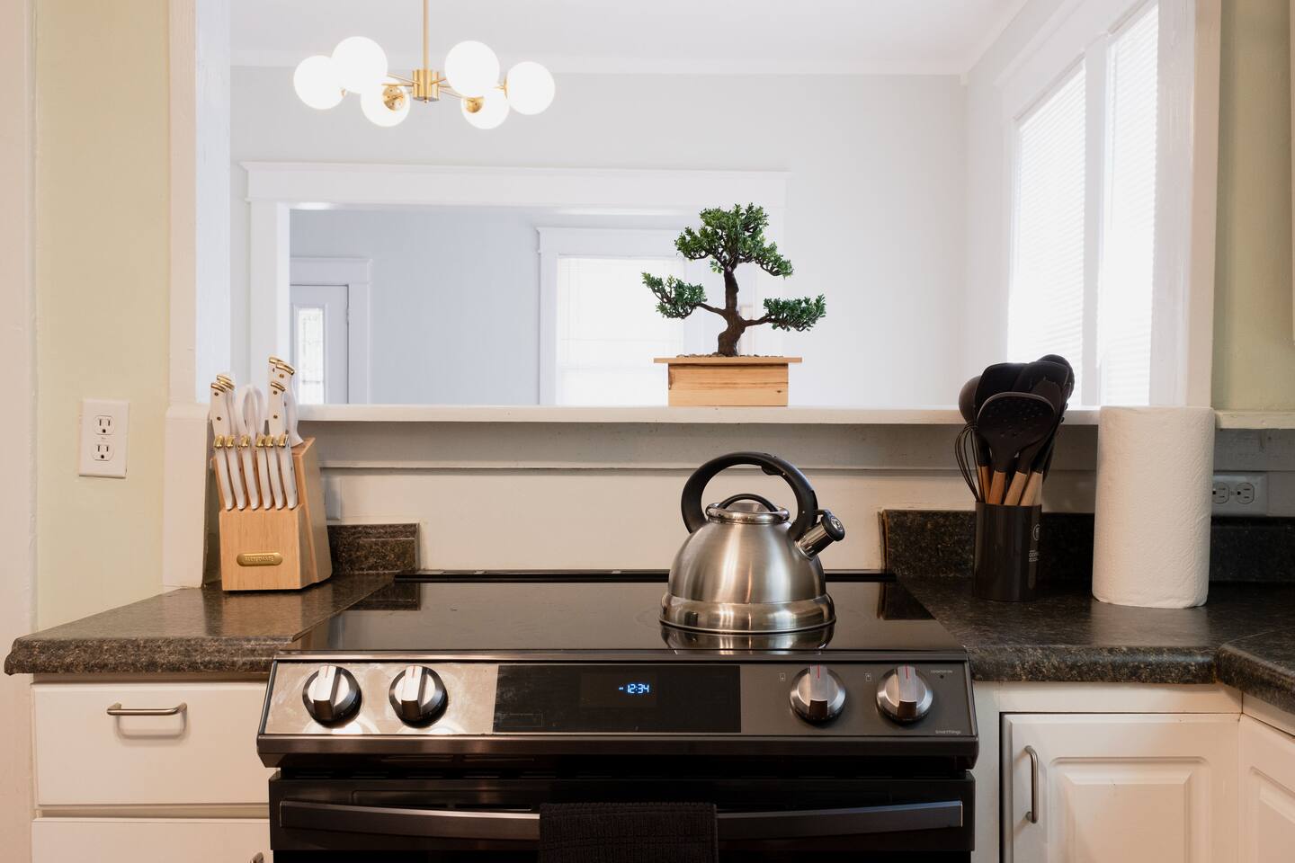 Getting around is super convenient either on foot, scooter, bike or by car. Our home includes two private parking spots in the back and free street parking.