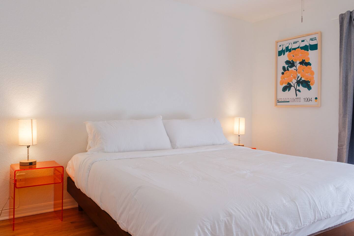 Experience urban sophistication in our luxurious 2-bedroom loft-style apartment in the heart of Thornton Park. This stunning space blends modern design with comfort, emphasizing art deco and mid century modern style design. Each bedroom offers King Size beds, ample storage, and private bathrooms. Enjoy a glass of wine or cup of coffee from the balcony while overlooking Thornton Park's vibrant dining, shopping, and nightlife, this apartment is the ideal base for exploring the BEST of Orlando.